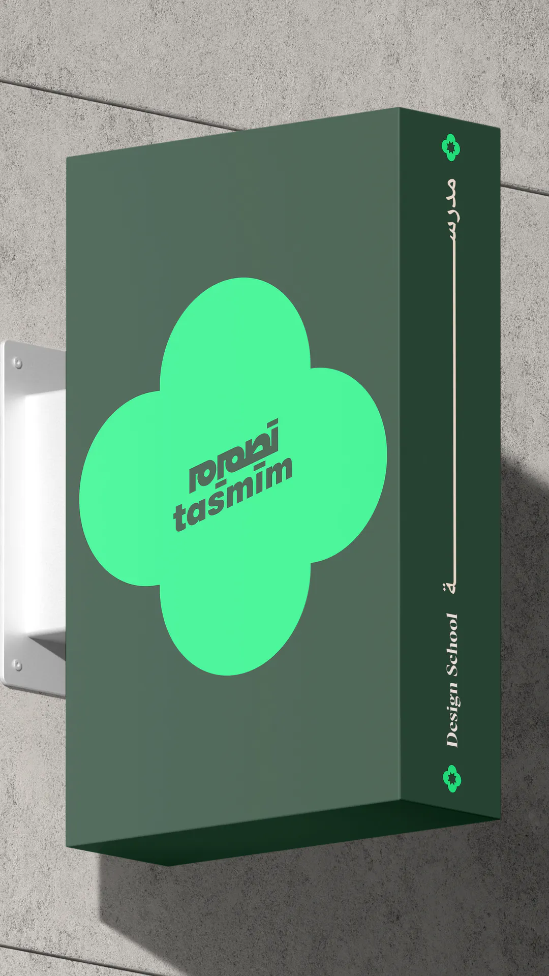 Tasmim’s branding merges 2D and 3D elements, creating a dynamic identity that reflects the school’s experimental spirit. The bilingual system seamlessly integrates Arabic and English typography, balancing structured grids with fluid, motion-driven compositions.